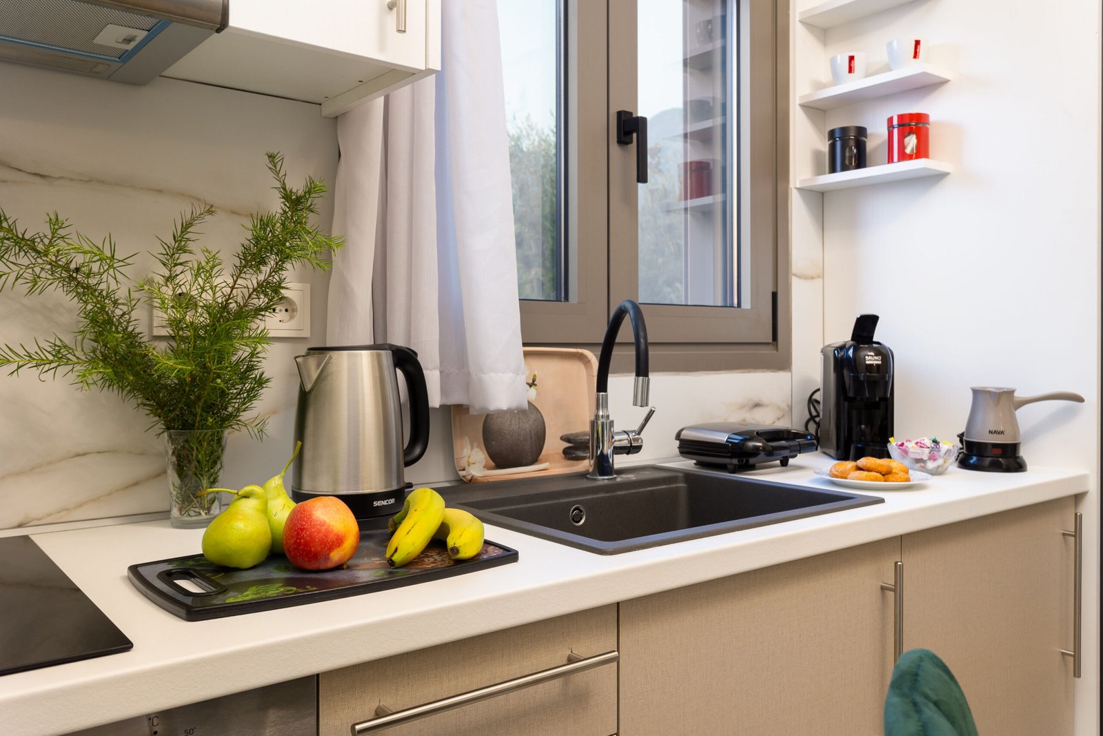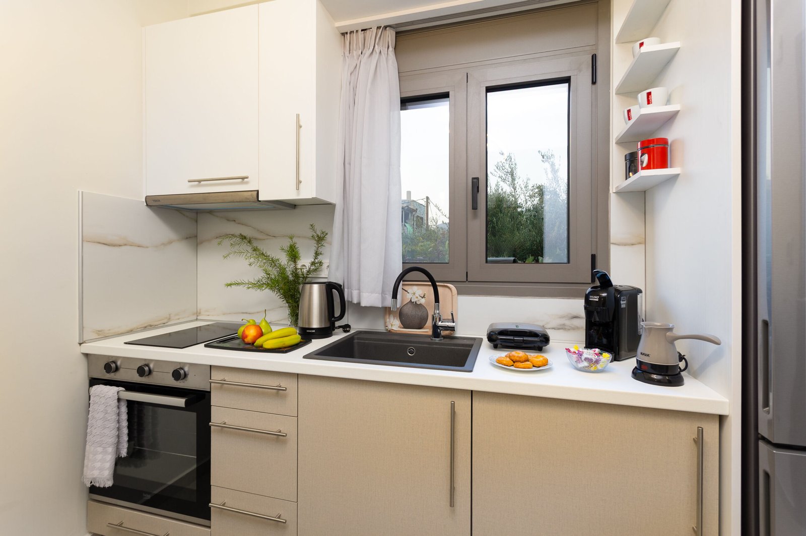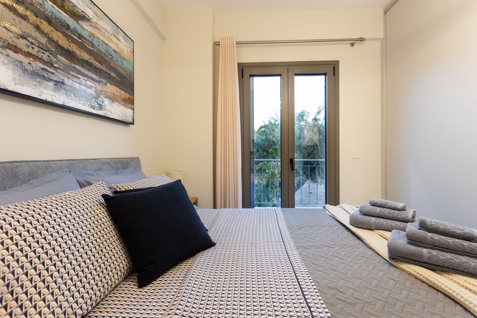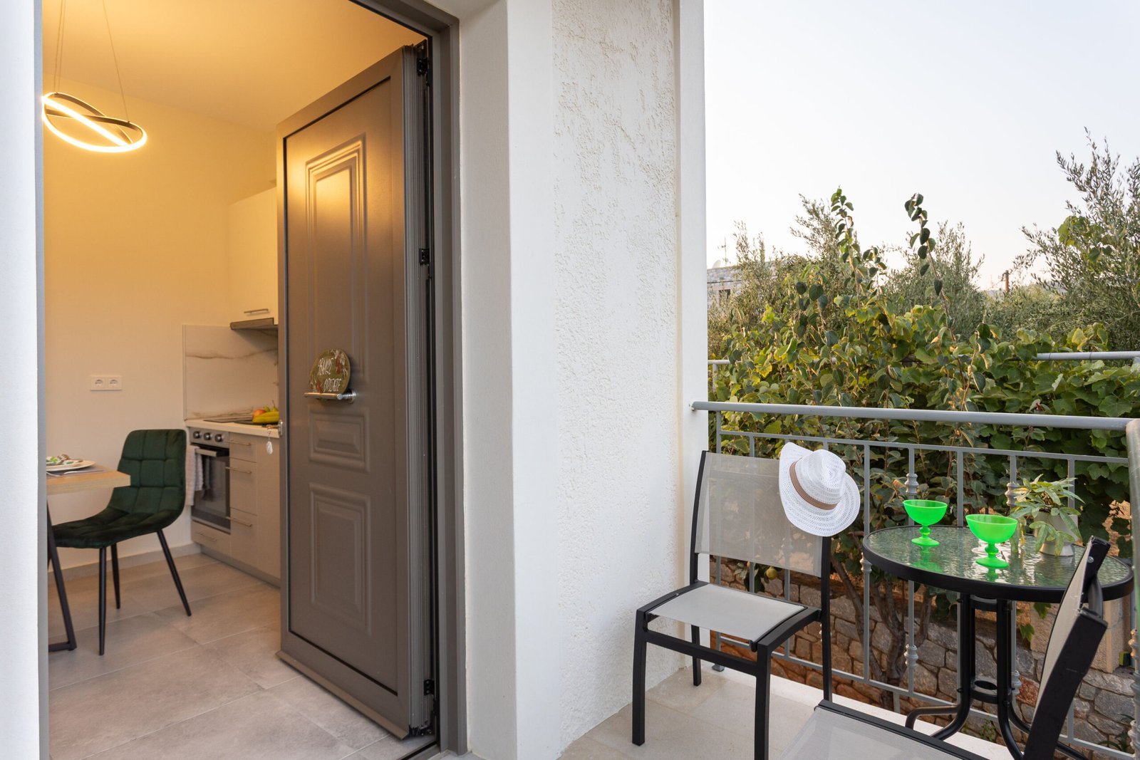 Located on a quiet village road, the apartment offers easy access to local cafés, beaches, and shops — all within a short walk. Enjoy the calm of your private balcony, prepare meals at home, and relax in a setting made for unhurried days.