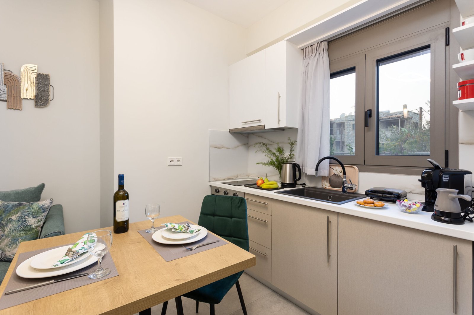 The Sun Apartment is part of Sunstone Apartments in Stoupa, a bright and modern one-bedroom space designed for comfort and simplicity. With soft tones, natural light, and a well-equipped kitchen, it’s a welcoming base for one or two guests in the heart of the village.
